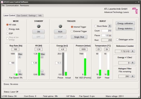 The ATLEX laser incorporates a newly-designed microprocessor-based control unit providing the user with numerous useful functions of the laser including: